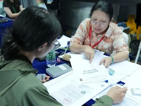 清晨,体育馆学院迎新点早已排开长桌,老师们热情地迎接新生,耐心解答问题、办理手续,一切井然有序。登记完之后,学院老师还微笑着向新生递出学院定制的礼物。