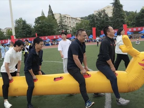 在“无敌风火轮”“八仙过海”“旱地龙舟”“超级障碍赛”趣味运动项目中,师生们齐心协力、配合默契,现场欢声笑语不断。