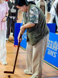 捶丸:选手们手持球杖,于场地内推杆击球,在“古代高尔夫”的趣味体验中,灵活调整策略,尽显身姿与思维的双重活力。