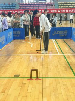 投壶:赛场屏息凝神,我院参赛队员手持箭矢,瞄准壶口沉稳投掷,箭矢入壶的清脆声响,引得场边阵阵喝彩;