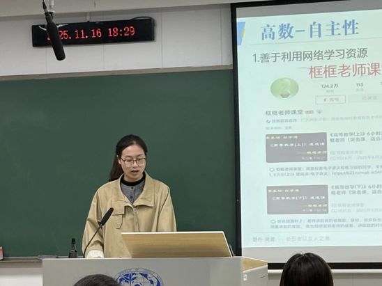 在高等数学方面,王心洁同学向同学们强调了自主学习的重要性,并指出可以积极借助如B站、小红书等平台上的优质网络学习资源,以拓展学习渠道。同时她也提醒大家,要全面掌握高等数学的相关知识。
