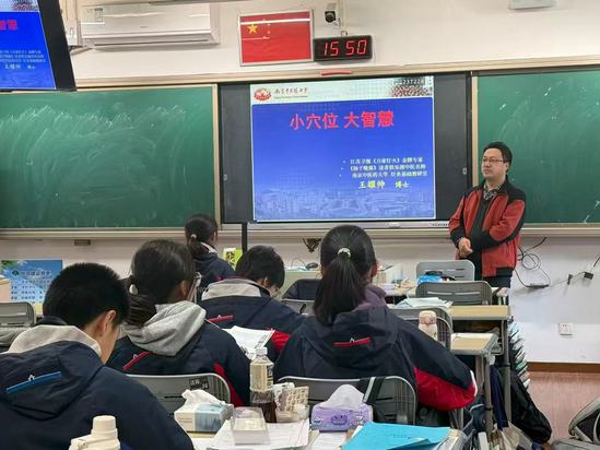 为深入推动“高校高中协同育人”体系建设,全面落实“中医药文化+”大中小学思政教育一体化实践,学院积极响应学校“中医药文化进中学”项目号召,走进南京市金陵中学开展四期“中医药文化进中学”校本选修课授课活动。课程内容贯穿中医药健康文化与代际情感教育,旨在引导中学生在知识学习与价值体认中增强文化自信、培养社会责任、提升综合素养。
