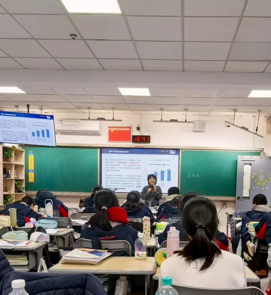 黄璜副教授以《“银发经济”里的“东方处方”》为题,系统阐释了中医药在应对人口老龄化过程中的独特价值。课程结合政策解读与产业案例,引导学生理解中医药在老年慢病调养、功能康复、药膳食疗等领域的应用,并鼓励学生思考“中学生能为老龄化社会做什么”,在青少年心中播下关注老龄事业、传承中医智慧的种子。