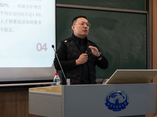 11月28日,学院在B7-201举办《养老产业的机遇与挑战:银轩的“主动式康养”破局之路》主题讲座。本次活动由学院党总支副书记、副院长苏文娟主持,副院长卢圣锋、学工办全体老师及养老服务管理专业学生共同参与。银轩康养董事长孙大同受邀作为主讲嘉宾,为师生带来了一场内容丰富、视角前沿的行业分享。