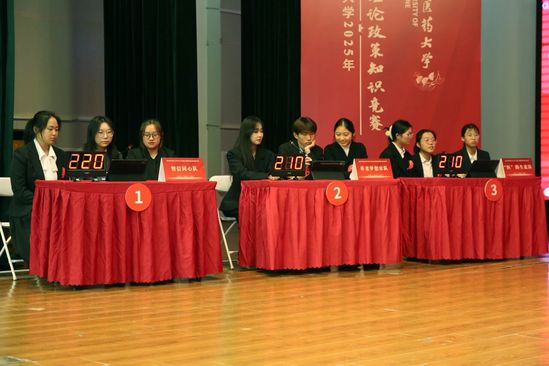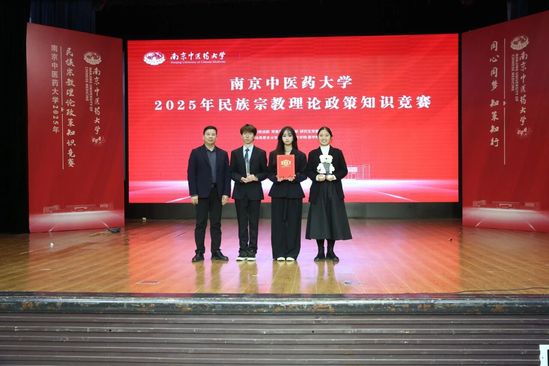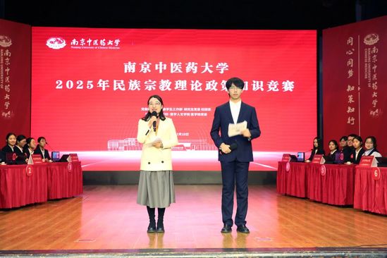 12 月 10 日,南京中医药大学 2025 年民族宗教理论政策知识竞赛在青春剧场圆满落幕。来自中医学院、医学院、针灸推拿学院·养生康复学院、养老服务与管理学院、人工智能与信息技术学院、泰州校区的六支参赛队伍进入决赛,展开了一场兼具知识性与观赏性的对决。