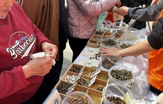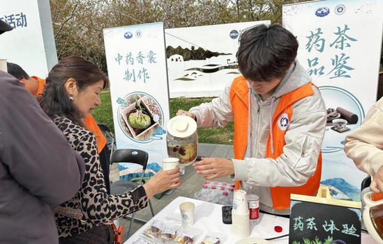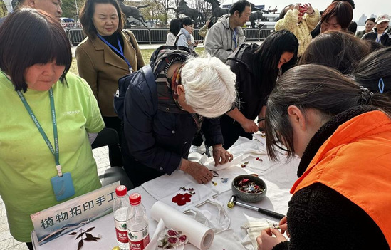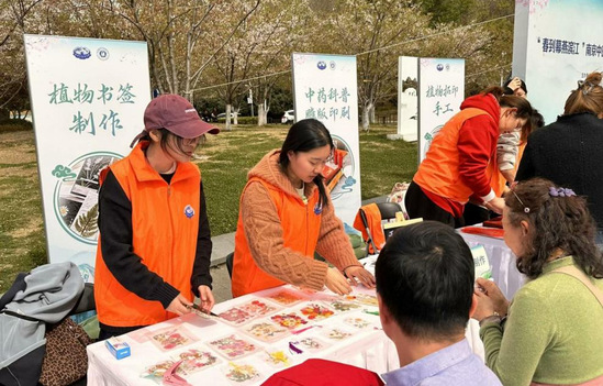 在五马渡广场,南京中医药大学师生带领参与者开展中医药文化体验活动。植物书签制作、药茶品鉴等互动项目,生动展现了传统医药与现代生活的融合创新。