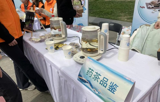 在药茶品鉴环节,橙小青团队依据中医养生理论,精心调配出多款针对不同体质和季节的养生药茶,如用金银花、连翘泡制的清热解毒茶,以黄芪、红枣熬制的补气养血茶,还有适合春日饮用的疏肝理气的玫瑰花茶。在品鉴药茶的同时,志愿者为嘉宾详细介绍每款药茶的配方、功效以及适用人群,现场游客纷纷表示获益匪浅。