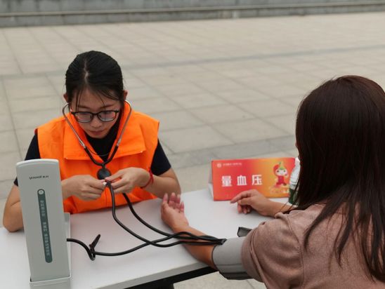 活动现场,“橙小青”团队的志愿者们分工明确,设置了多个服务区域。在健康检测区,志愿者为长者们免费测量血压,详细记录数据并耐心解读,针对血压异常的爷爷奶奶给出饮食、作息等方面的调理建议。