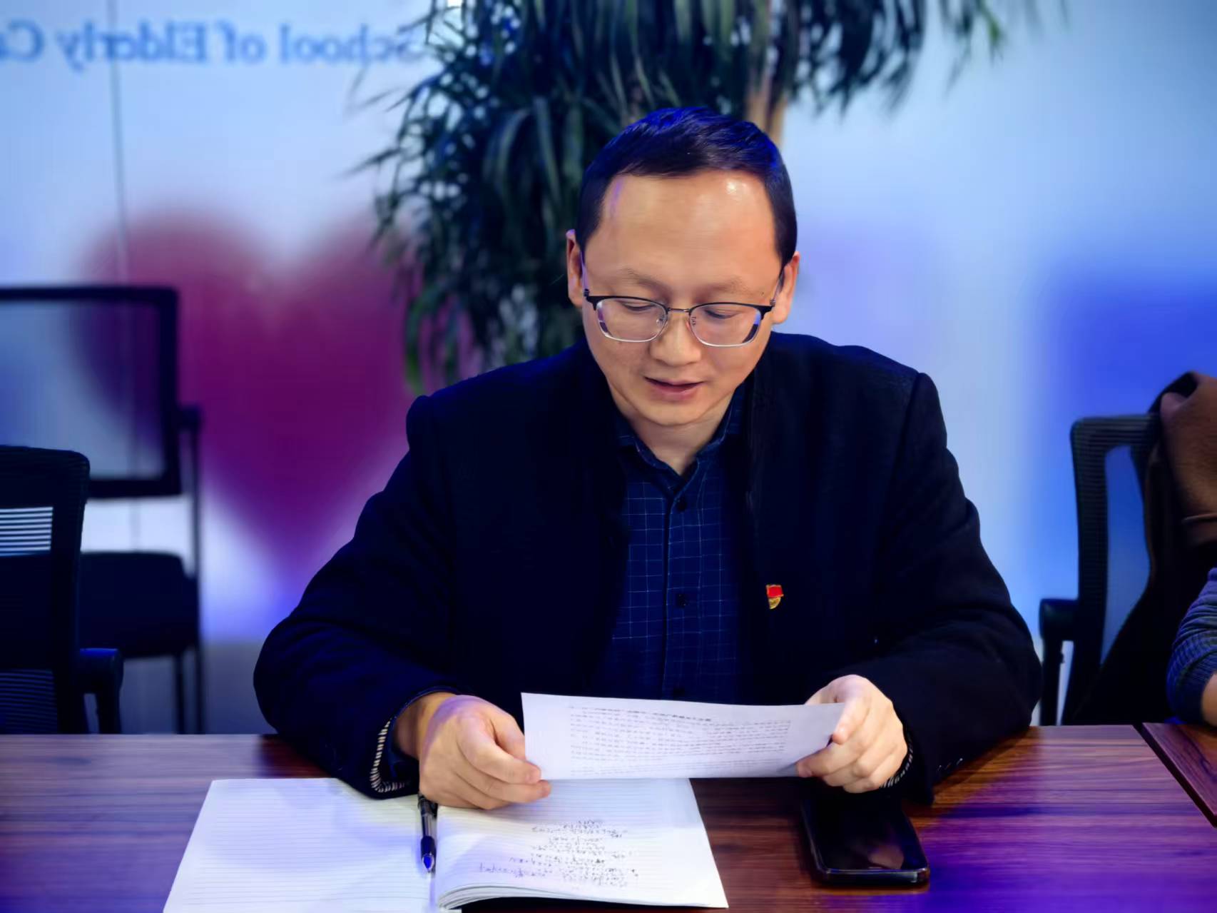 学习会上,孙新新领学党的二十届四中全会关于民生保障特别是养老服务领域的重要部署,解读积极应对人口老龄化国家战略的核心要义,梳理全会精神与学院、研究院养老服务人才培养、科研创新、社会服务的结合点。